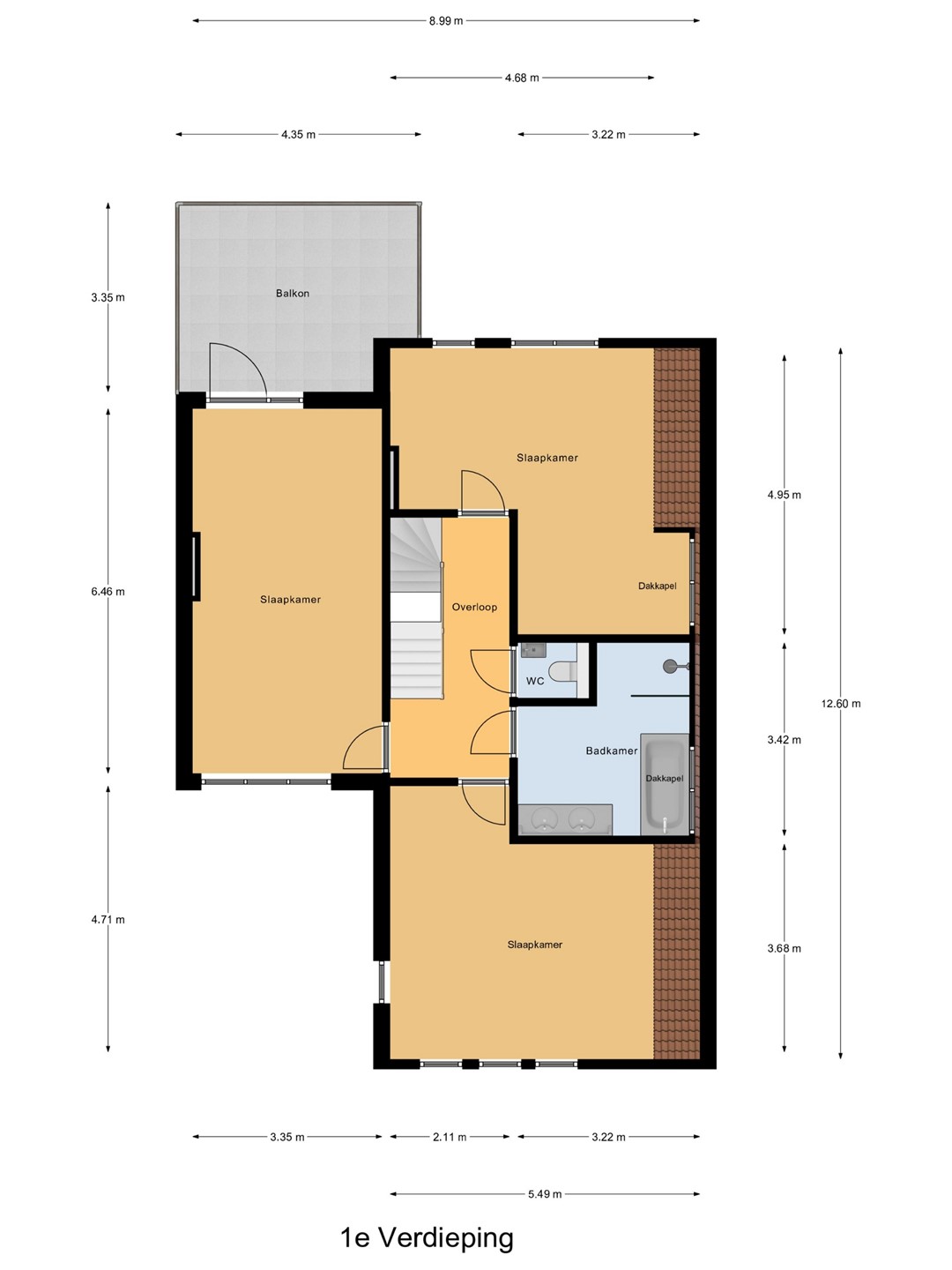 Verdieping: riante overloop met toegang tot separaat toilet, 3 slaapkamers (waarvan 1 toegang heeft tot een riant balkon) en een badkamer welke v.v. een dakkapel. De riante en verzorgde badkamer heeft de beschikking over een inloopdouche, ligbad en dubbele wastafelmeubel. De vloerverwarming en koeling op deze verdieping maakt het comfort compleet.