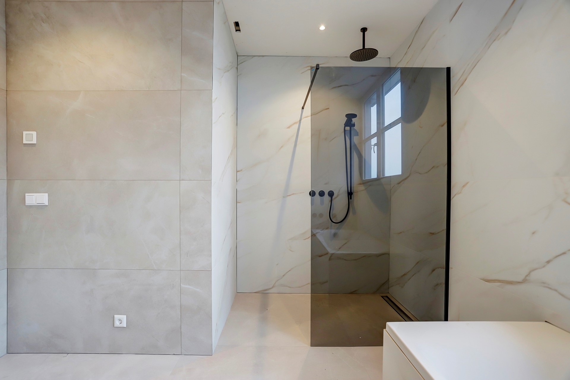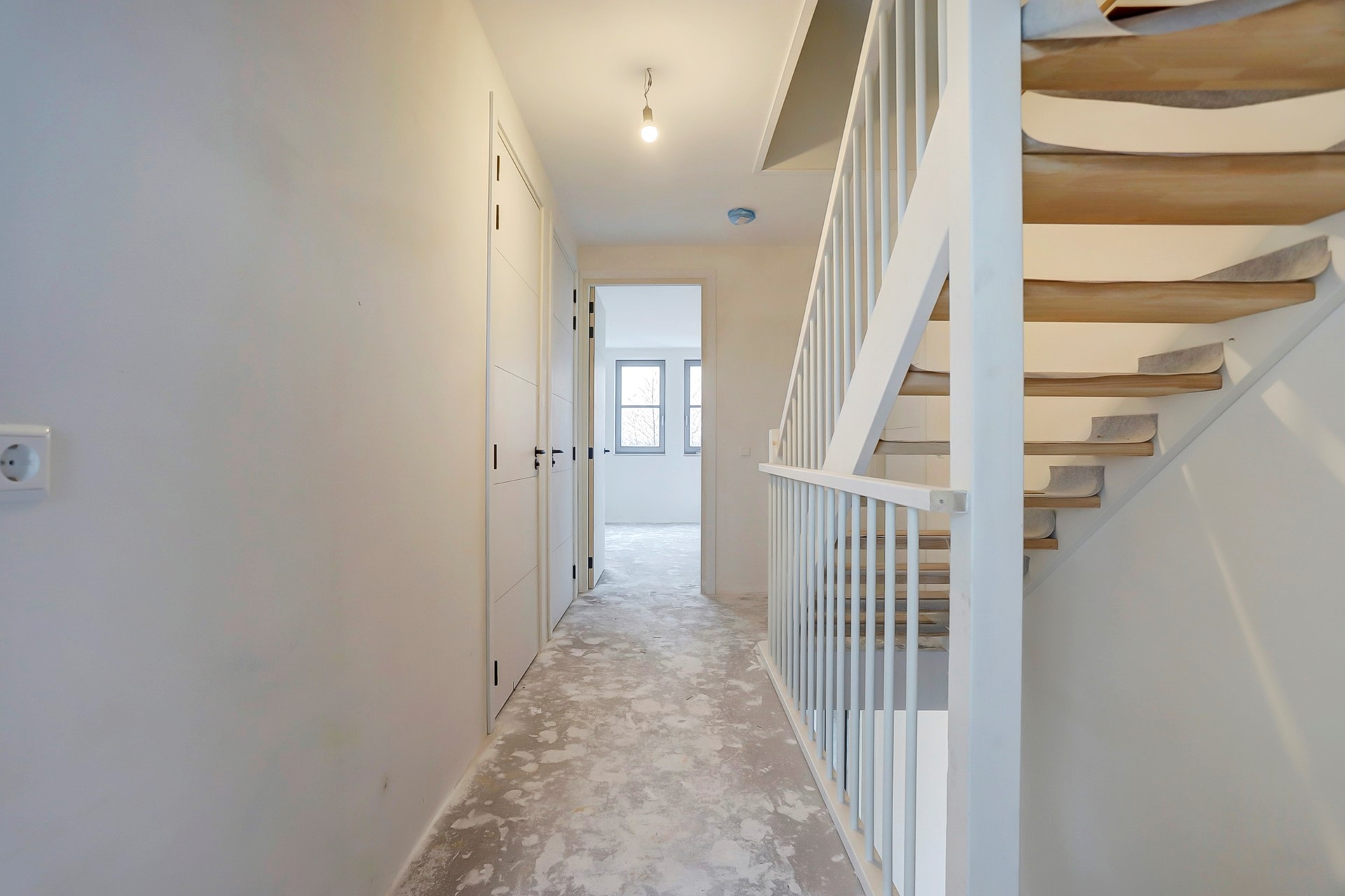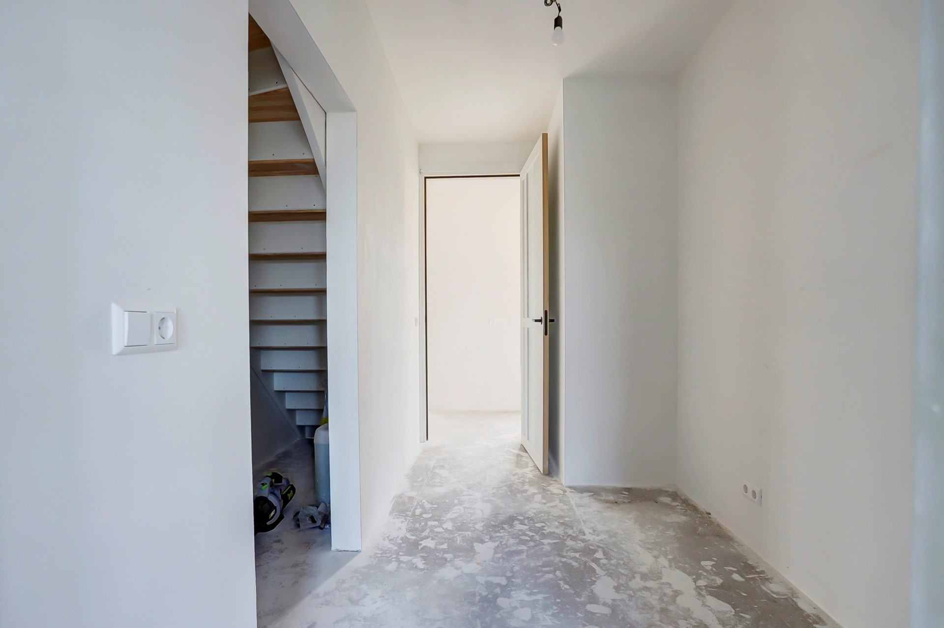 De badkamer en toiletten zijn reeds afgewerkt. Betreffende de overige ruimtes, hierin heeft u nog de mogelijkheid om de vertrekken volledig naar uw eigen hand te zetten, met vrijheid in de keuze van de afwerkingen en materialen.