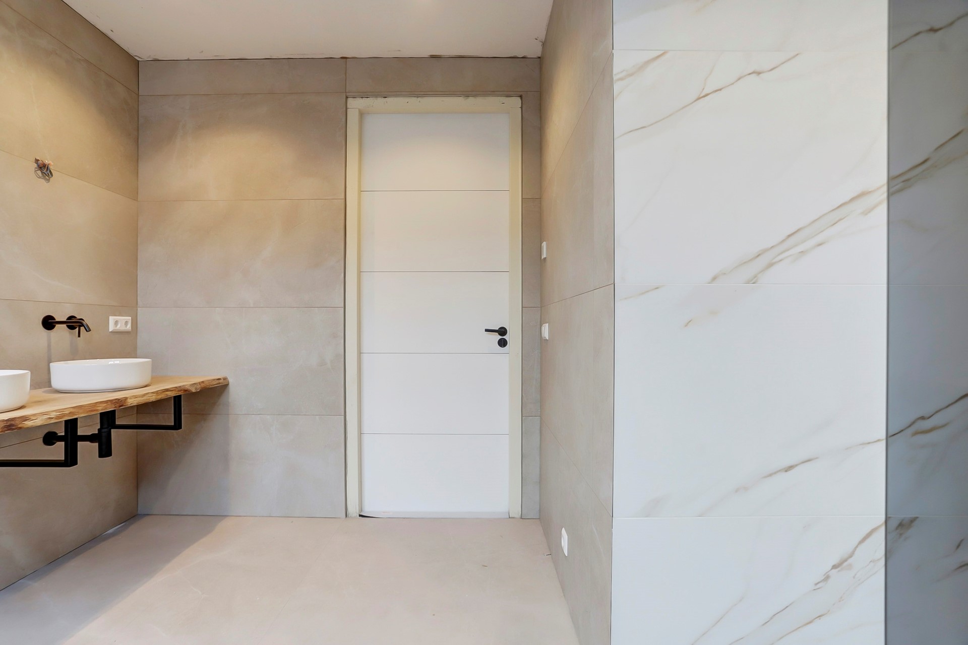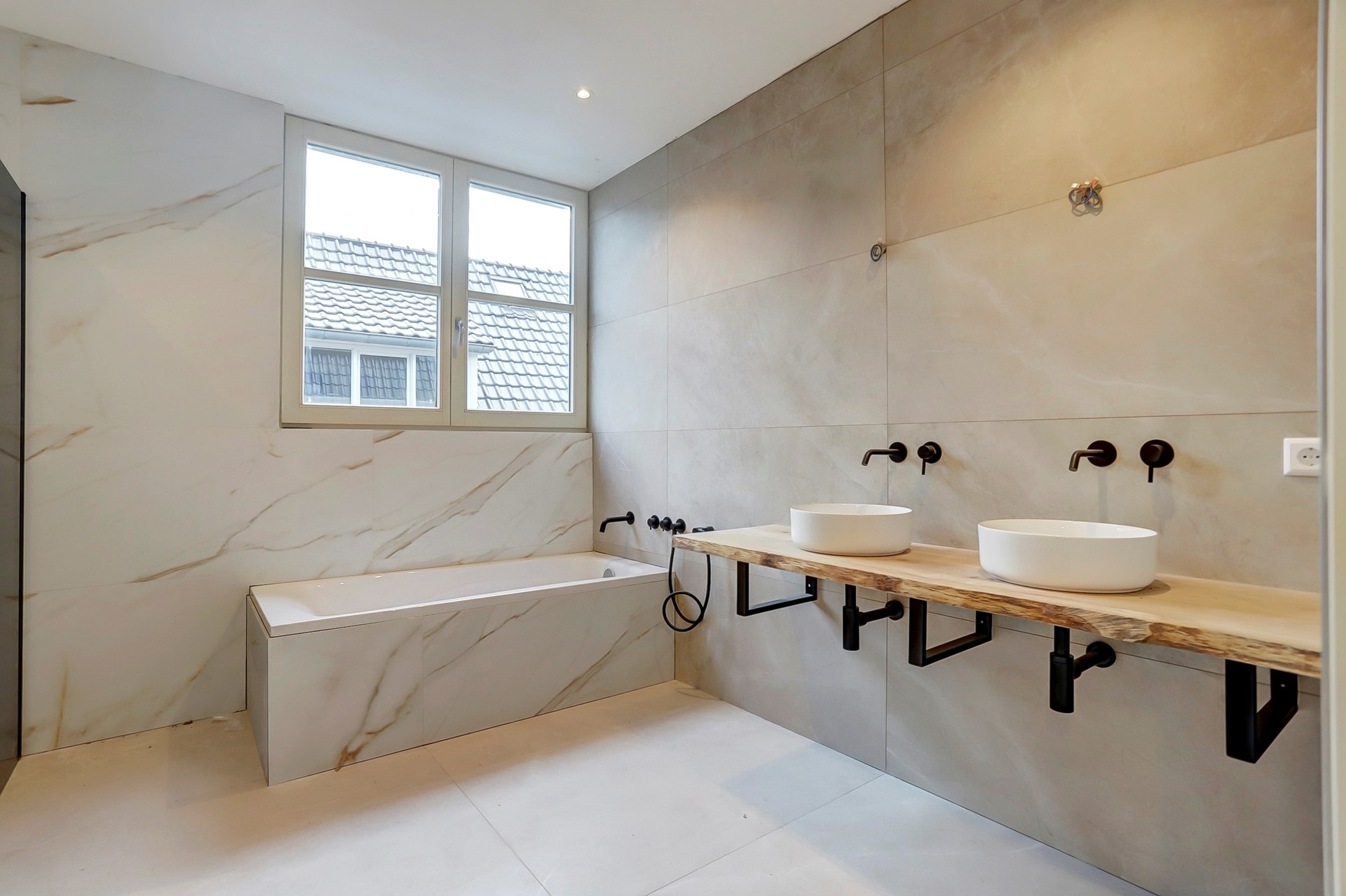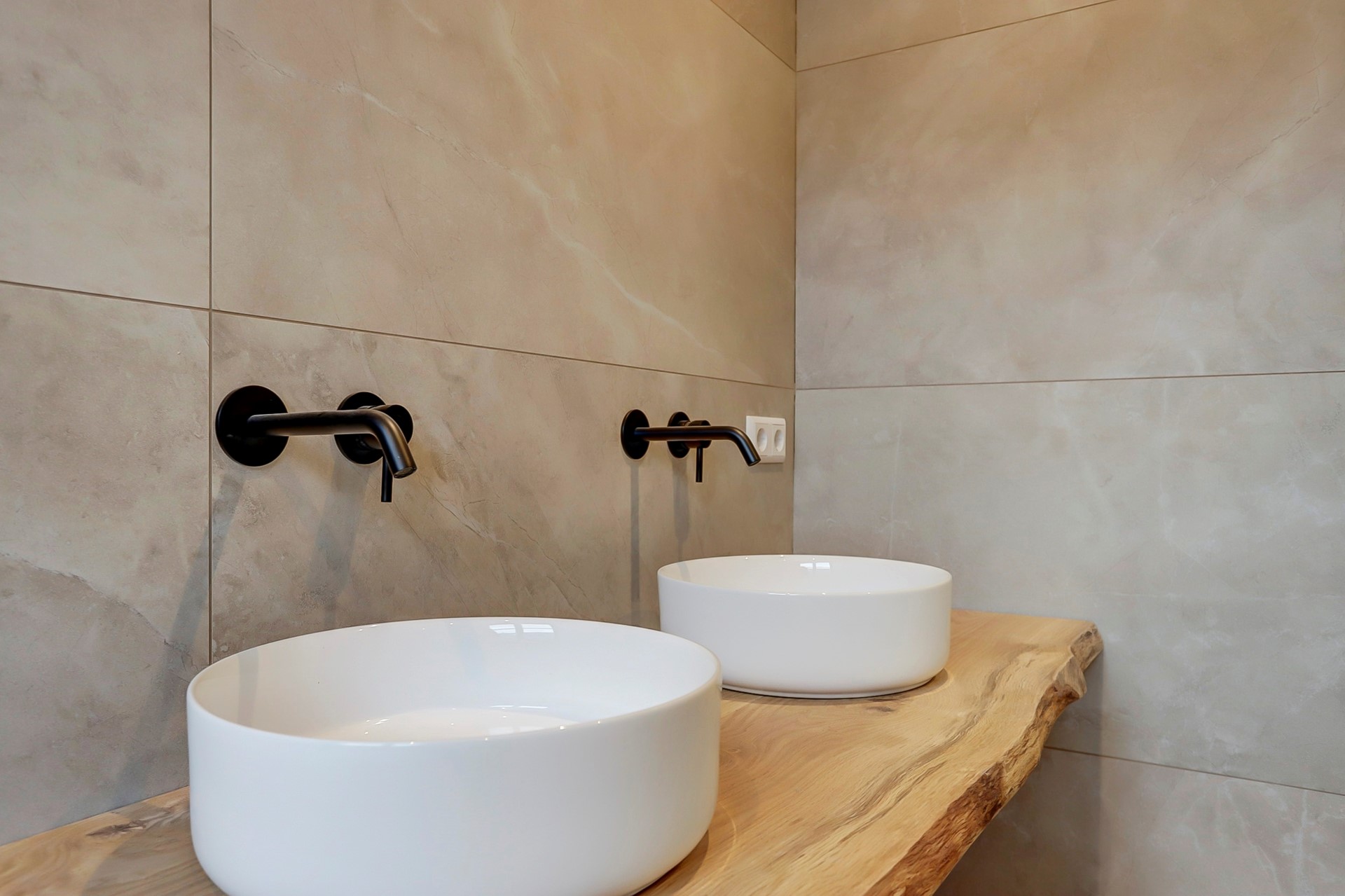De badkamer en toiletten zijn reeds afgewerkt. Betreffende de overige ruimtes, hierin heeft u nog de mogelijkheid om de vertrekken volledig naar uw eigen hand te zetten, met vrijheid in de keuze van de afwerkingen en materialen.