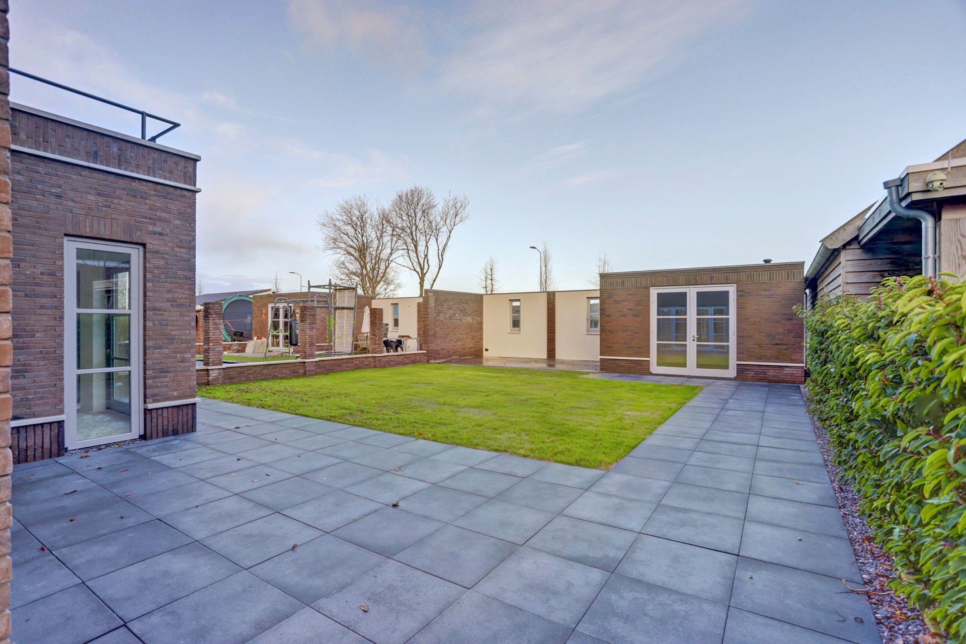 • Buitenom: inclusief tuinmuur, beschoeiing en een vloer voor een veranda (monoliet afgewerkt)